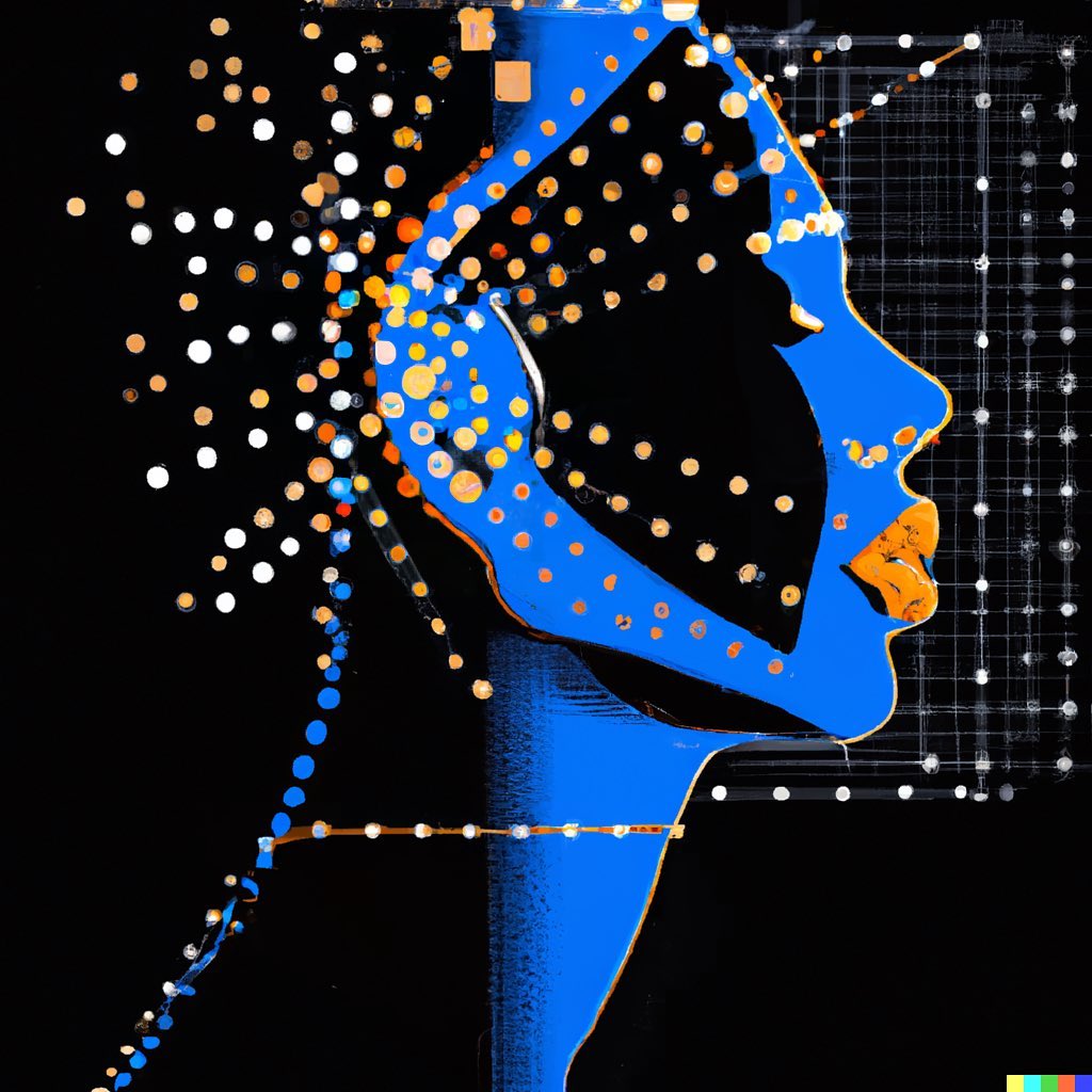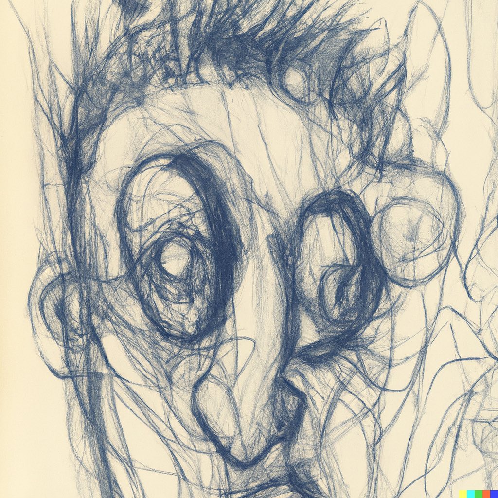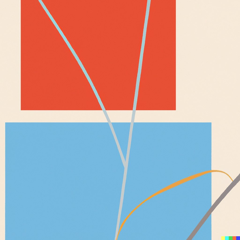 To be completely honest, some images in this set can be considered creepy too (see “Fading Man” and “Sinister Sisters”). But there are several others which show that AI (more specifically, in this case, DALL-E) is able to reproduce a wide range of styles. “Melted Love”, for example, is a fine cross hatching work. “3D Tension” and “Abstract Garden” are pieces of geometric abstraction, whilst “Tranquility” and “The Jazz Musician” could easily have been made by a skilled watercolor painter.